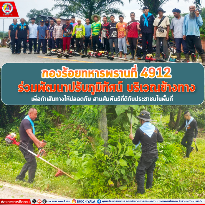 เมื่อวันที่ 12 กรกฎาคม 2567 เวลา 08.00 น. พันเอก ภาณุวัฒน์ สุคชเดช ผู้บังคับหน่วยเฉพาะกิจกรมทหารพรานที่ 49 มอบหมายให้ กองร้อยทหารพรานที่ 4912 นำโดย จ่าสิบเอก พิพัฒน์พงศ์ ยงญาติ รองหัวหน้าชุดปฏิบัติการกิจการพลเรือนที่ 4912 และกำลังพลชุดปฏิบัติการกิจการพลเรือน ร่วมกับ ผู้นำท้องที่, ผู้นำศาสนา และประชาชนในพื้นที่บ้านดาฮง หมู่ที่ 4 ปรับปรุงภูมิทัศน์พัฒนาสองข้างทาง โดยการตัดหญ้า เก็บกวาดขยะตามจุดต่างๆ เพื่อความเป็นระเบียบเรียบร้อยสะอาดสวยงามตลอดบริเวณถนนสองข้างทาง อีกทั้งยังลดปริมาณขยะ ปลูกจิตสำนึกให้ประชาชนรักความสะอาด และสร้างความปลอดภัยแก่ประชาชนผู้ที่เดินทางสัญจรไป-มา ณ บ้านดาฮง หมู่ที่ 4 ตำบลเชิงคีรี อำเภอศรีสาคร จังหวัดนราธิวาส