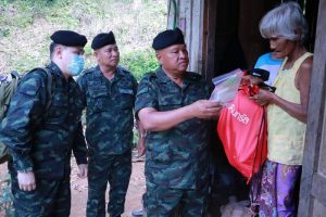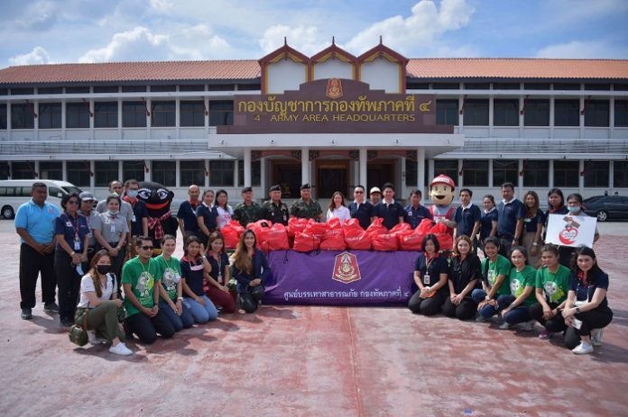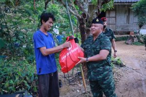 หลังจากนั้นแม่ทัพภาคที่ 4 พร้อมคณะ ได้เดินทางมอบถุงยังชีพ และให้กำลังใจผู้ประสบภัยในพื้นที่ โดยมีแพทย์จากโรงพยาบาลค่ายวชิราวุธ มาให้การตรวจรักษาพยาบาลเบื้องต้นแก่ผู้ที่เจ็บป่วย พร้อมมอบยา และเวชภัณฑ์ที่จำเป็น ให้แก่ผู้ที่ประสบภัยด้วย ทั้งนี้เพื่อเป็นการบรรเทาความเดือดร้อนและสร้างขวัญกำลังใจแก่ผู้ประสบภัยเป็นการเบื้องต้น โดยผู้ประสบภัยต่างรู้สึกดีใจที่หน่วยทหารเข้ามาดูแลให้การช่วยเหลืออย่างเต็มที่ตั้งแต่วันแรกที่เกิดอุทกภัย โดยแม่ทัพภาคที่ 4 ได้สั่งการไปยังหน่วยทหารในพื้นที่รับผิดชอบ นำเครื่องมือ ยุทโธปกรณ์ และกำลังพล เข้าช่วยเหลือซ่อมแซมที่อยู่อาศัยให้กับประชาชนที่ได้รับผลกระทบ ที่ถือเป็นสิ่งที่ต้องทำอย่างเร่งด่วน เพื่อให้กลับเข้าสู่ภาวะปกติโดยเร็ว