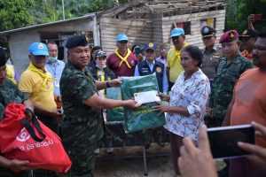 โดยแม่ทัพภาคที่ 4 ได้กล่าวให้กำลังใจแก่ผู้ประสบภัยว่า ขอให้ผ่านพ้นวิกฤตครั้งนี้ไปให้ได้ กองทัพจะช่วยเหลือ และอยู่เคียงข้างพี่น้องประชาชนอย่างเต็มที่ พร้อมฝากเตือนพี่น้องประชาชนยังคงต้องเฝ้าระวังอย่างใกล้ชิดเนื่องจากเป็นพื้นที่เสี่ยง จนกว่าผ่านช่วงมรสุมไป ทหารยังคงอยู่ในพื้นที่เพื่อให้การช่วยเหลือพี่น้องประชาชนอย่างใกล้ชิด พร้อมเน้นย้ำกำลังพลว่า สามารถปฏิบัติหน้าที่ได้ทันทีไม่ต้องรอคำสั่ง