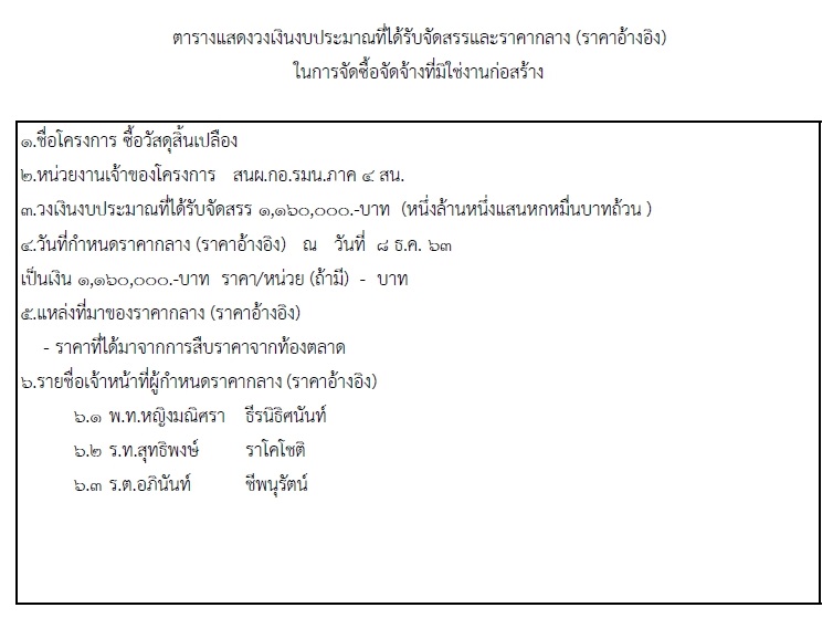จัดซื้อ จัดจ้างประกาศแผนการจัดซื้อ จัดจ้าง ตารางแสดงวงเงินงบประมาณที่ได้รับจัดสรรและราคากลาง (ราคาอ้างอิง) ในการจัดซื้อจัดจ้างที่มิใช่งานก่อสร้าง โครงการ ซื้ออุปกรณ์ (1,160,000.-) December 10, 2020 1641 Share Facebook Twitter Google+ Telegram LINE สกบ.กอ.รมน.ภาค 4 สน.