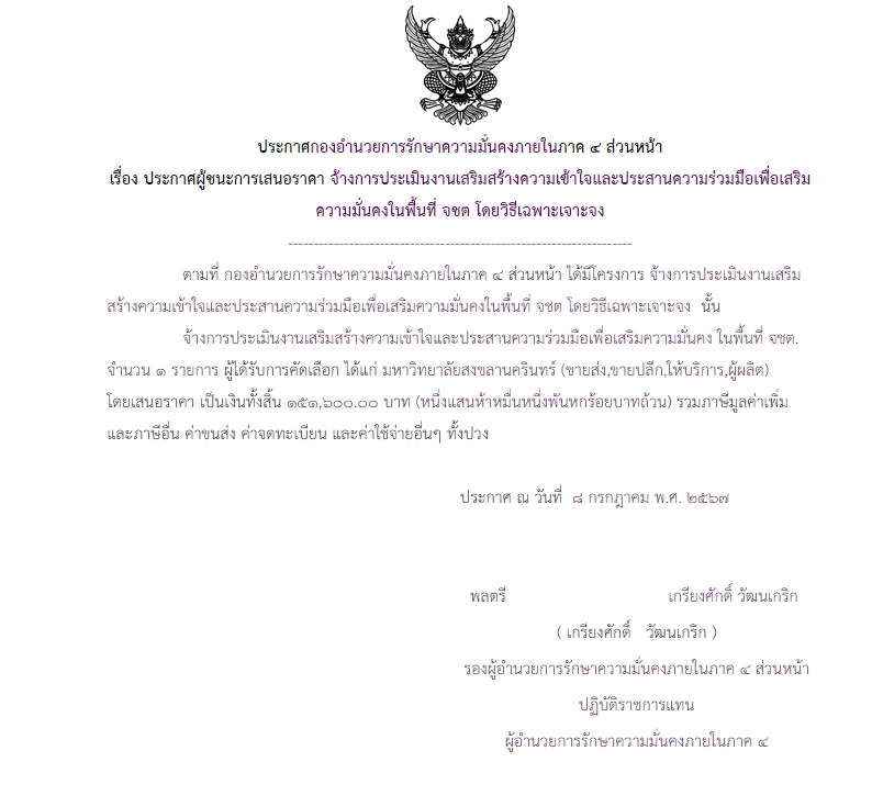 จัดซื้อ จัดจ้างประกาศผู้ชนะการเสนอราคา ประกาศผู้ชนะการเสนอราคา จ้างประเมินงานเสริมสร้างความเข้าใจและประสานความร่วมมือเพื่อเสริมความมั่นคงในพื้นที่ จชต โดยวิธีเฉพาะเจาะจง July 17, 2024 232 Share Facebook Twitter Google+ Telegram LINE