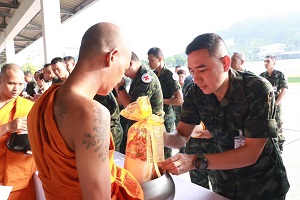 วันนี้ (18 กรกฎาคม 2567) เวลา 07.00 น. ที่ ค่ายสิรินธร ตำบลเขาตูม อำเภอยะรัง จังหวัดปัตตานี พลโท ศานติ ศกุนตนาค แม่ทัพภาคที่ 4 / ผู้อำนวยการรักษาความมั่นคงภายในภาค 4 พร้อมด้วย พลตรี นิติ ติณสูลานนท์ ผู้บังคับหน่วยเฉพาะกิจยะลา นำกำลังพล ข้าราชการและครอบครัว ภายในกองอำนวยการรักษาความมั่นคงภายในภาค 4 ส่วนหน้า และกำลังพลกรมทหารราบที่ 152 ร่วมกิจกรรมทำบุญตักบาตรพระภิกษุ จำนวน 82 รูป ที่เข้ารับการอุปสมบทในโครงการบรรพชาอุปสมบทหมู่เฉลิมพระเกียรติพระบาทสมเด็จพระเจ้าอยู่หัวเนื่องในโอกาส พระราชพิธีมหามงคลเฉลิมพระชนมพรรษา 6 รอบ 28 กรกฎาคม 2567 เพื่อเป็นส่วนหนึ่งในการร่วมส่งเสริม และสืบสานประเพณีทางพระพุทธศาสนาให้คงอยู่ในพื้นที่จังหวัดชายแดนภาคใต้