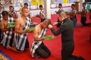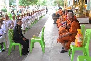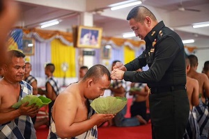 โดยในพิธี พันเอก สิทธิศักดิ์ เจนบรรจง ผู้บังคับการกรมทหารราบที่ 152 / หัวหน้าคณะทำงานโครงการอันเนื่องมาจากพระราชดำริฯ คณะที่ 1 จังหวัดยะลา ประธานฝ่ายฆราวาส ได้จุดธูปเทียนบูชาพระประธานและถวายราชสักการะเบื้องหน้าพระบรมฉายาลักษณ์พระบาทสมเด็จพระเจ้าอยู่หัว และสมเด็จพระนางเจ้าฯ พระบรมราชินี และเข้าสู่พิธีการทางศาสนา จากนั้นประธานสงฆ์ พร้อมด้วยประธานฝ่ายฆราวาส นำส่วนราชการ ครอบครัวและญาติของผู้บรรพชาอุปสมบทได้ร่วมกันประกอบพิธีปลงผมนาค โดยเริ่มขลิบผม อาบน้ำนาค แต่งชุดนาค และอบรมเตรียมความพร้อมนาคก่อนที่จะมีการบรรพชาอุปสมบทในวันที่ 19 กรกฎาคม 2567