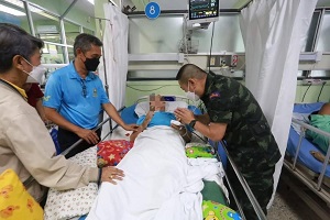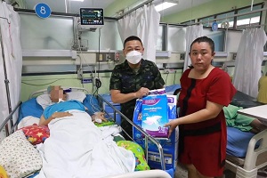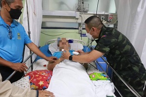 วันที่ 22 กรกฎาคม 2567 เวลา 09.30 น. พันเอก สิทธิศักดิ์ เจนบรรจง ผู้บังคับการกรมทหารราบที่ 152 / หัวหน้าคณะทำงานโครงการอันเนื่องมาจากพระราชดำริฯ คณะที่ 1 จังหวัดยะลา เยี่ยมให้กำลังใจ นายอุดมชัย สันติสุขกุล ซึ่งเป็นสมาชิกราษฎรอาสารักษาหมู่บ้านจังหวัดยะลา ในตำแหน่งหัวหน้ากองพันพิเศษปิยะมิตร / จุฬาภรณ์พัฒนา ซึ่งได้เข้าผ่าตัดหลอดเลือดหัวใจอุดตัน ณ โรงพยาบาลเบตง ตำบลเบตง อำเภอเบตง จังหวัดยะลา พร้อมทั้งได้พูดคุยสอบถามอาการ มอบความห่วงใย และได้มอบเครื่องอุปโภค เพื่อเป็นขวัญกำลังใจแก่ผู้ป่วยและครอบครัว