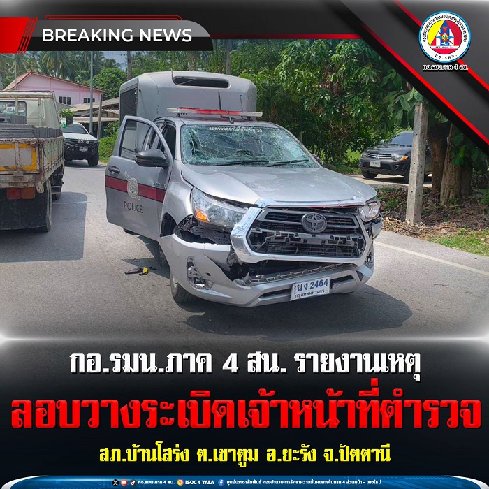 วันนี้ (24 กรกฎาคม 2567) เวลา 13.40 น. ได้เกิดเหตุคนร้ายลอบวางระเบิดเจ้าหน้าที่ตำรวจ สถานีตำรวจภูธรบ้านโสร่ง เหตุเกิดขณะที่ เจ้าหน้าที่ตำรวจเดินทางด้วยรถยนต์กระบะ (รถเคลื่อนย้ายผู้ต้องหา) ยี่ห้อ โตโยต้า สีเทา หมายเลขทะเบียน 1นง 2464 กรุงเทพมหานคร เพื่อเดินทางไปส่งผู้ต้องหายังศาลจังหวัดปัตตานี และระหว่างเดินทางกลับ ถึงบริเวณสามแยกต้นสน หมู่ที่ 2 บ้านบูเกะดาตู ตำบลเขาตูม อำเภอยะรัง จังหวัดปัตตานี คนร้ายได้จุดชนวนระเบิดขึ้น แรงระเบิดทำให้รถยนต์ได้รับความเสียหาย และเจ้าหน้าที่ตำรวจได้รับบาดเจ็บ จำนวน 1 นาย ได้นำตัวส่งเข้ารับการรักษายังโรงพยาบาลยะลาสิริรัตนรักษ์ ทราบชื่อ คือ จ่าสิบตำรวจ อาลี มรรคาเขต ตำแหน่ง ผู้บังคับหมู่ป้องกันและปราบปราม สถานีตำรวจภูธรบ้านโสร่ง มีอาการหูอื้อ แน่นหน้าอกและปวดศีรษะ