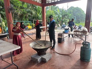 สำหรับการกวนอาซูรอ หมายถึง การนำของที่รับประทานได้ทั้งของคาวของหวานจำนวน 10 อย่างมากวนรวมกัน อีกทั้งยังหมายถึง วันที่ 10 ของเดือนมุฮัรรอม ซึ่งเป็นเดือนแรกของฮิจเราะห์ศักราชตามปฏิทินศาสนาอิสลาม เรียกได้ว่าเป็นช่วงเวลาปีใหม่ของชาวมุสลิม ประเพณีการกวนขนมอาซูรอ เป็นประเพณีที่สำคัญของชาวมุสลิมที่ปฏิบัติสืบต่อกันมาเป็นเวลายาวนานนับพันปี เป็นประเพณีที่ต้องปฏิบัติ เพื่อเป็นการส่งเสริมให้ทุกคนรักและสามัคคีกัน ในปัจจุบันในพื้นที่จังหวัดชายแดนภาคใต้ก็ยังมีการจัดเป็นงานประเพณีกวนขนมอาซูรอขึ้นในชุมชนเป็นประจำทุกปี และเป็นการสานความสัมพันธ์ระหว่างเจ้าหน้าที่รัฐและประชาชนให้เกิดความรัก ความสามัคคี ในหมู่คณะ นำไปสู่การอยู่ร่วมกันอย่างสันติสุข