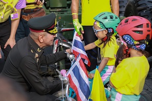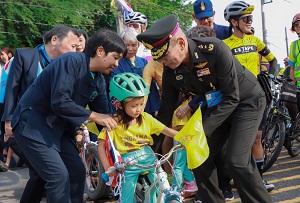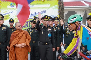พลโท ศานติ ศกุนตนาค แม่ทัพภาคที่ 4 / ผู้อำนวยการรักษาความมั่นคงภายในภาค 4 กล่าวว่า โครงการปั่นจักรยานสืบสานพระราชปณิธาน Bike for Earth เทิดไท้องค์ราชัน เป็นโครงการที่มีความกล้าหาญกล้าที่จะลุกขึ้นมาประกาศทางรอดจากสถานการณ์ในปัจจุบัน ซึ่งทุกคนทราบดีว่า เป็นสถานการณ์สำคัญที่เราทุกคนต้องเผชิญ และจะส่งผลกระทบทวีคูณขึ้นในอนาคต ความกล้าที่จะลุกขึ้นมาประกาศทางรอด จึงเป็นสิ่งจำเป็น และเป็นความหวังที่จะได้แนวทางจากการปฏิบัติ ลงแรง ลงใจ ด้วยใจ ที่จงรักภักดีในการน้อมนำแนวทางและโครงการพระราชทาน โคก หนอง นา แห่งน้ำใจ และความหวังและโคก หนอง นา ข้าราชบริพาร ไปจนถึง อำเภออารยเกษตรไปขยายผลให้เกิดเป็นรูปธรรมโดยเฉพาะอย่างยิ่งเป็นความร่วมมืออันเกิดจาก “จิตอาสา”อันเป็นแนวทางตามพระราชดำริของพระบาทสมเด็จพระวชิรเกล้าเจ้าอยู่หัว เนื่องในโอกาสอันเป็นมหามงคลเฉลิมพระเกียรติพระวชิรเกล้าเจ้าอยู่หัว ครบ 6 รอบ