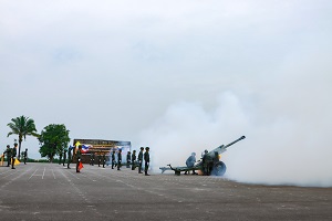 สำหรับการยิงสลุตหลวงในครั้งนี้ กองพันทหารปืนใหญ่ที่ 15 กรมทหารปืนใหญ่ที่ 5 จัดปืนใหญ่ขนาด 150 มิลลิเมตร จำนวน 3 กระบอก ทำการยิงพร้อมเพลงสรรเสริญพระบารมี โดยนายทหารควบคุมปืนใหญ่ยิงสลุตหลวง จะสั่งยิงตามลำดับปืนใหญ่ทีละกระบอก แต่ละกระบอก เว้นระยะ 5 วินาที จำนวน 21 นัด