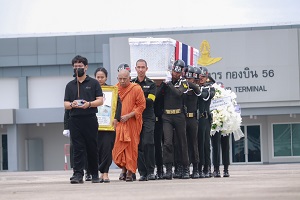 จากนั้นเวลา 11.00 น. ได้กระทำพิธีส่งร่างวีรชนทหารกล้าที่ท่าอากาศยานทหาร กองบิน 56 อำเภอคลองหอยโข่ง จังหวัดสงขลา อย่างสมเกียรติ เพื่อนำร่างผู้วายชนม์ กลับไปบำเพ็ญกุศลตามหลักศาสนายังภูมิลำเนาบ้านเกิด ที่จังหวัดนครราชสีมา ณ วัดด่านกะตา หมู่ที่ 7 ตำบลพระพุทธ อำเภอเฉลิมพระเกียรติ จังหวัดนครราชสีมา ด้วยเครื่องบินลำเลียงแบบ C-295 W ของกองทัพบก