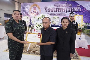 พร้อมกันนี้ยังมอบเหรียญบางระจันและใบประกาศนียบัตร เพื่อเป็นการประกาศเกียรติคุณ เชิดชูเกียรติ ในการประกอบคุณงามความดีและความเสียสละของวีรชนทหารกล้า พร้อมมอบเงินช่วยเหลือเบื้องต้นและแสดงความเสียใจต่อครอบครัวของผู้วายชนม์ โดยมีผู้แทนหัวหน้าส่วนราชการร่วมวางหรีดสดุดีวีรชนทหารกล้า อาทิ พลตำรวจโท ปิยะวัฒน์ เฉลิมศรี ผู้บัญชาการตำรวจภูธรภาค 9 /ผู้บัญชาการกองกำลังตำรวจจังหวัดชายแดนภาคใต้ , พลตรี อภินันท์ แจ่มแจ้ง ผู้บัญชาการกองพลทหารราบที่ 5 , พลตรี ชาคริต อุจะรัตน ผู้บัญชาการกองพลรบพิเศษที่ 1 , พันเอกสุนทร กำลังมาก ผู้บังคับการกรมรบพิเศษที่ 4 รวมทั้งผู้บังคับบัญชา เพื่อนข้าราชการทหารร่วมพิธีอย่างสมเกียรติ