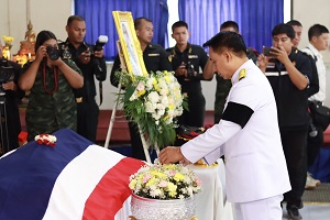 โอกาสนี้ แม่ทัพภาคที่ 4 / ผู้อำนวยการรักษาความมั่นคงภายในภาค 4 ได้วางหรีดเคารพศพในนามของ นาย เศรษฐา ทวีสิน นายกรัฐมนตรีในฐานะผู้อำนวยการรักษาความมั่นคงภายในราชอาณาจักร , นายสุทิน คลังแสง รัฐมนตรีว่าการกระทรวงกลาโหม, พลเอก เจริญชัย หินเธาว์ ผู้บัญชาการทหารบก / ผู้บัญชาการศูนย์ปฏิบัติการกองทัพบก / รองผู้อำนวยการรักษาความมั่นคงภายในราชอาณาจักร , พลเอก พรศักดิ์ พูลสวัสดิ์ อดีตแม่ทัพภาคที่ 4 และในนามของแม่ทัพภาคที่ 4 / ผู้บัญชาการศูนย์ปฏิบัติการ กองทัพภาคที่ 4 / ผู้อำนวยการรักษาความมั่นคงภายในภาค 4