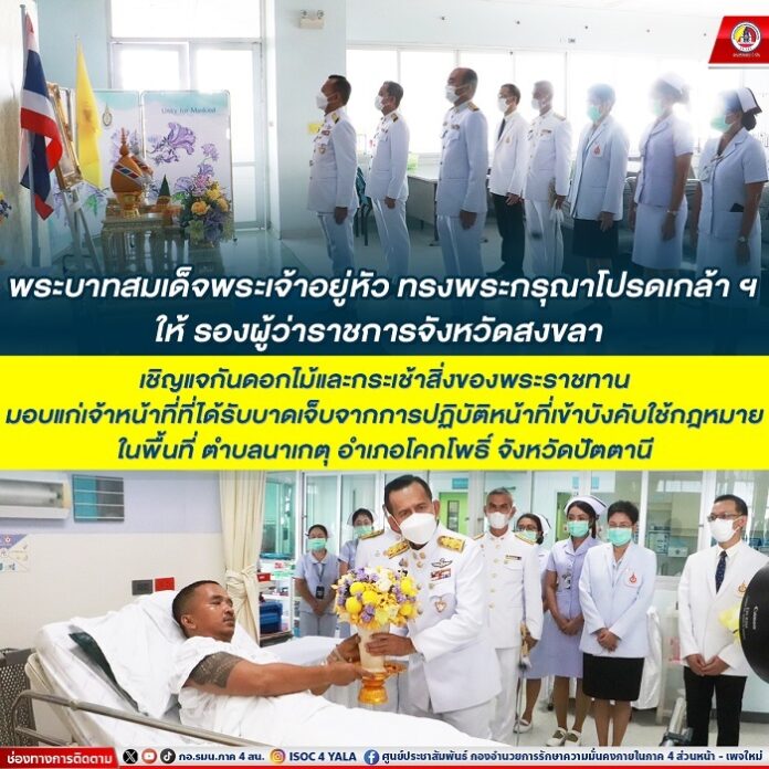 ในการนี้ รองผู้ว่าราชการจังหวัดสงขลา ได้อัญเชิญพระราชกระแสรับสั่งความห่วงใยกับผู้ได้รับบาดเจ็บและครอบครัวได้รับทราบ การได้รับพระราชทานพระมหากรุณาธิคุณในครั้งนี้ ยังความปลื้มปีติและสำนึกในพระมหากรุณาธิคุณแก่ผู้บาดเจ็บและครอบครัวอย่างหาที่สุดมิได้ และทำให้ผู้ได้รับบาดเจ็บมีขวัญกำลังใจเพิ่มขึ้น