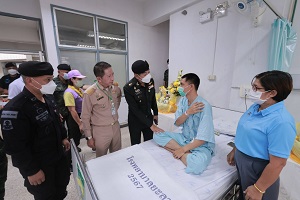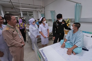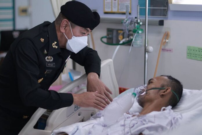 เมื่อวันนที่ (6 สิงหาคม 2567) พลโท ศานติ ศกุนตนาค แม่ทัพภาคที่ 4 / ผู้อำนวยการรักษาความมั่นคงภายในภาค 4 นำกระเช้าและความห่วงใยจากผู้บัญชาการทหารบก เข้าเยี่ยมให้กำลังใจกำลังพลที่ได้รับบาดเจ็บ จากเหตุคนร้ายลอบวางระเบิดเจ้าหน้าที่สังกัด หน่วยเฉพาะกิจกรมทหารพรานที่ 41 ขณะปฏิบัติภารกิจเดินเท้าออกลาดตระเวน เพื่อดูแลรักษาความปลอดภัยให้กับพี่น้องประชาชน ในพื้นที่หมู่ที่ 6 ตำบลจะกว๊ะ อำเภอรามัน จังหวัดยะลา เหตุเกิดเมื่อวันที่ 4 สิงหาคม 2567 ที่ผ่านมาได้แก่ อาสาสมัครทหารพราน อนุภาพ แก้วแฝก ปัจจุบันเข้ารับการรักษาตัว ณ โรงพยาบาลสงขลานครินทร์ อำเภอหาดใหญ่ จังหวัดสงขลา จำนวน 1 นาย จากนั้น แม่ทัพภาคที่ 4 / ผู้อำนวยการรักษาความมั่นคงภายในภาค 4 ได้เดินทางเข้าเยี่ยมกำลังพลอีก 5 นาย ประกอบด้วย จ่าสิบเอก กมล ดีเสมอ, อาสาสมัครทหารพราน สมชาย ชายแหวง, อาสาสมัครทหารพราน ทัศณัยน์ เพ็รชมณี, อาสาสมัครทหารพราน กาจกวี เครือพันธุ์ และอาสาสมัครทหารพราน พงษ์สันต์ ศิริศิลป์ ซึ่งปัจจุบันเข้ารับการรักษาตัวอยู่ที่ โรงพยาบาลยะลา อำเภอเมือง จังหวัดยะลา