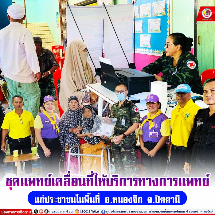 วันที่ 6 สิงหาคม 2567 เวลา 09.00 น. หน่วยเฉพาะกิจกรมทหารพรานที่ 43 นำกำลังพล ร่วมกับ ชุดแพทย์เคลื่อนที่จังหวัดชายแดนใต้ ผู้นำท้องที่ และผู้นำท้องถิ่น ดำเนินการออกหน่วยเคลื่อนที่เปิดให้บริการตรวจสุขภาพแก่ประชาชน ณ โรงเรียนบ้านปากาจิน่อ หมู่ที่ 6 บ้านปากาจิน่อ ตำบลดอนรัก อำเภอหนองจิก จังหวัดปัตตานี โดยทำการตรวจรักษาและดูแลรักษาสุขภาพที่จำเป็นให้กับประชาชนในลักษณะแบบผสมผสาน มีทั้งการบริการทางการแพทย์พื้นฐาน ตรวจวัดความแข็งแรงของร่างกาย วัดความดันโลหิต ตรวจรักษาทั่วไป แบบไม่มีค่าใช้จ่าย พร้อมให้เกี่ยวกับวิธีการดูแลรักษาสุขภาพที่ถูกต้อง นอกจากนี้มีการแนะนำให้ความรู้เรื่องเรื่องโรคอุบัติใหม่และโรคอุบัติซ้ำ โดยมีประชาชนเข้าร่วมใช้บริการ