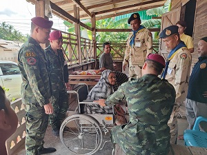 สำหรับการลงพื้นที่ในครั้งนี้ นอกจากจะเป็นการลงพื้นที่เพื่อดำเนินกิจกรรมจิตอาสามอบรถเข็นวีลแชร์สำหรับผู้ป่วยติดเตียงแล้ว ยังเป็นการดำเนินการฝึกเสริมสร้างผู้นำสมาชิกกองอาสารักษาดินแดนจังหวัดชายแดนภาคใต้ รุ่นที่ 11 เพื่อให้มีความรู้ ความชำนาญในการลงพื้นที่ปฏิบัติงานอย่างมีประสิทธิภาพลเพิ่มมากขึ้น รวมทั้งสามารถให้ควาช่วยเหลือหรือบรรเทาความเดือดร้อนต่าง ๆ ได้อย่างคล่องแคล่ว รวดเร็ว และสามารถสร้างความเชื่อมั่นให้กับพี่น้องประชาชนได้