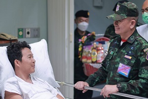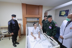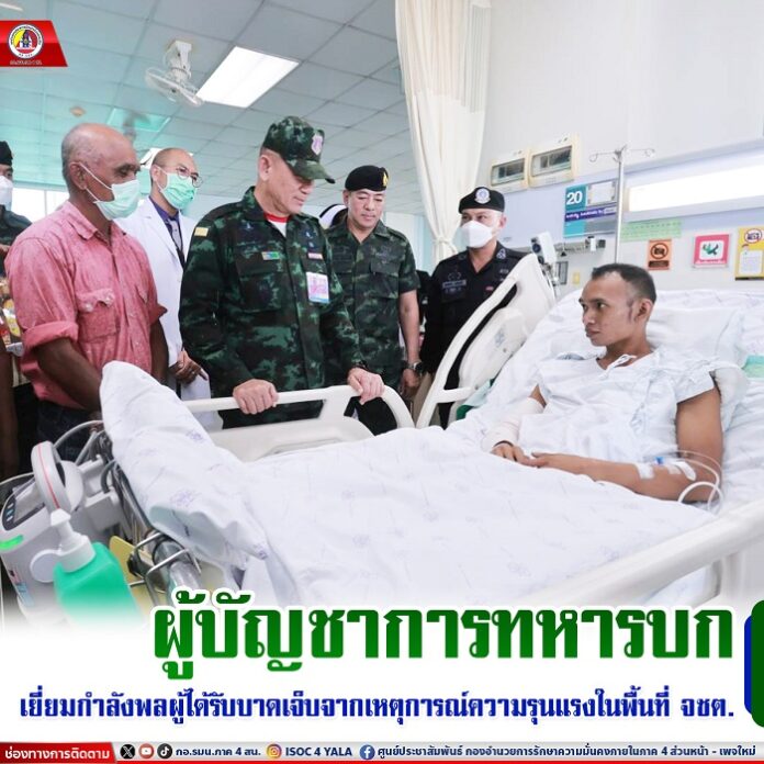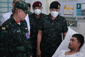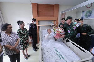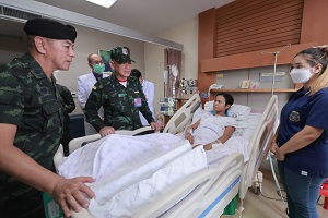 ในการนี้ ผู้บัญชาการทหารบก ได้สอบถามถึงอาการบาดเจ็บด้วยความห่วงใยอย่างใกล้ชิด พร้อมนำกระเช้าและของบำรุงขวัญเยี่ยมให้กำลังใจผู้ได้รับบาดเจ็บ ก่อนเน้นย้ำถึงเรื่องยืนยันถึงสิทธิและสวัสดิการต่าง ๆ พร้อมทั้งชื่นชมและให้กำลังใจแก่ครอบครัวทหารหาญที่เสียสละเพื่อรักษาความสงบเรียบร้อยให้แก่พี่น้องประชาชน ซึ่งเหตุการณ์ต่าง ๆ นั้นเป็นเหตุการณ์ที่ไม่มีใครอยากให้เกิดขึ้น แต่เมื่อทุกอย่างเกิดขึ้นแล้วขอถือเป็นบทเรียนและนำมาทบทวนแก้ไข ทั้งกล่าวขอบคุณการทำงานอย่างเต็มความสามารถของเจ้าหน้าที่ที่ได้ทำงานอย่างกล้าหาญ เด็ดเดี่ยว เป็นกำลังสำคัญในการทำพื้นที่ให้ปลอดเหตุ ประชาชนมีความปลอดภัย เพื่อพี่น้องประชาชนโดยส่วนรวม ขอให้มีกำลังใจที่ดีในการทำหน้าที่เพื่อสร้างความมั่นคงในพื้นที่ต่อไป