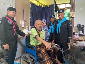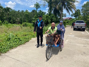 วันที่ 9 สิงหาคม 2567 กองร้อยทหารพรานที่ 2208 หน่วยเฉพาะกิจกรมทหารพรานที่ 22 จัดชุดปฏิบัติการกิจการพลเรือน ลงพื้นที่เยี่ยมให้กำลังใจ นายมูหัมมัด หะยี อายุ 72 ปี อาศัยอยู่บ้านเลขที่ 83/1 หมู่ที่ 3 ตำบลสะนอ อำเภอยะรัง จังหวัดปัตตานี ซึ่งเป็นผู้พิการทางการเคลื่อนไหว โดยได้สอบถามความเป็นอยู่ การดำเนินชีวิตประจำวัน ซึ่งปัจจุบันผู้พิการทางการเคลื่อนไหวได้นั่งรถสามล้อโยก แต่เนื่องจากล้อยางรถสามล้อโยกมีความชำรุดทรุดโทรม ทางเจ้าหน้าที่กองร้อยทหารพรานที่ 2208 หน่วยเฉพาะกิจกรมทหารพรานที่ 22 ได้นำรถสามล้อโยก ไปซ่อมบำรุง และนำมาส่งมอบคืน เพื่ออำนวยความสะดวกในการดำเนินชีวิต และเป็นขวัญกำลังใจให้กับผู้พิการและครอบครัว ตลอดจนยังลดความหวาดระแวงต่อเจ้าหน้าที่ “เพราะทหารคือที่พึ่งของประชาชนในทุกโอกาส”