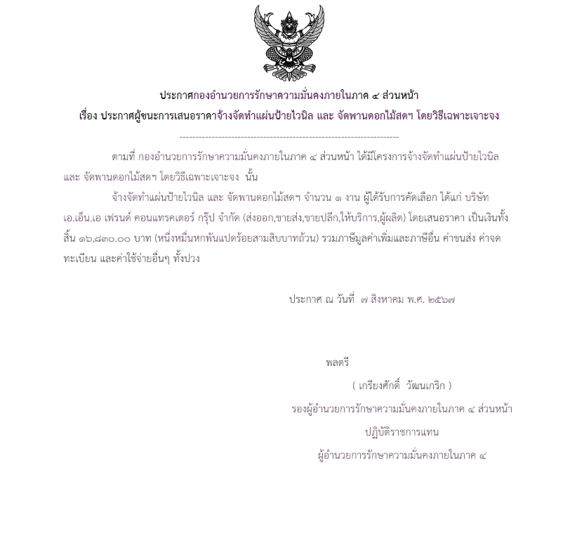 จัดซื้อ จัดจ้างประกาศผู้ชนะการเสนอราคา ประกาศผู้ขนะการเสนอราคาจ้างจัดทำแผ่นป้ายไวนิล และ จัดพานดอกไม้สดฯ โดยวิธีเฉพาะเจาะจง August 12, 2024 269 Share Facebook Twitter Google+ Telegram LINE