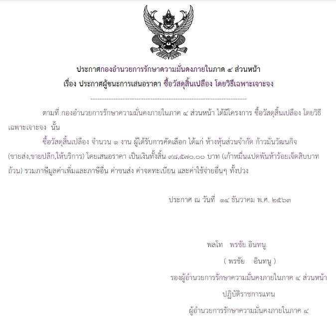 ประกาศผู้ชนะการเสนอราคา ซื้อวัสดุสิ้นเปลือง โดยวิธีเฉพาะเจาะจง (98,570.00)