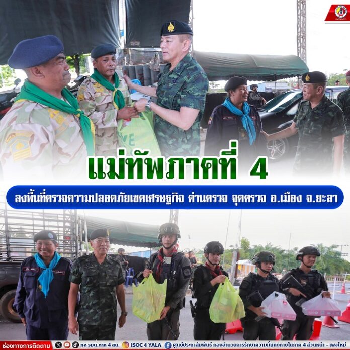 เมื่อวันที่ (15 สิงหาคม 2567 ) เวลา 13.00 น. พลโท ศานติ ศกุนตนาค แม่ทัพภาคที่ 4 / ผู้อำนวยการรักษาความมั่นคงภายในภาค 4 ลงพื้นที่ตรวจเยี่ยมให้กำลังใจเจ้าหน้าที่ในการปฏิบัติงานด้านการรักษาความปลอดภัยบริเวณด่านตรวจ จุดตรวจ ในพื้นที่เขตเศรษฐกิจ (Safety Zone) อำเภอเมือง จังหวัดยะลา เพื่อสร้างความมั่นใจให้แก่พี่น้องประชาชนในด้านการรักษาความปลอดภัยในพื้นที่