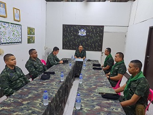 เมื่อวันที่ 15 สิงหาคม 2567 เวลา 15.00 น. พันโท ภูมิศักดิ์ ศักดิ์เพชร ผู้บังคับหน่วยเฉพาะสงขลา 40 ลงพื้นที่พบปะกำลังพล พร้อมมอบนโยบายและแนะนำแนวทางการปฏิบัติงานตามสั่งการของผู้บังคับบัญชา รวมทั้งได้สอบถามปัญหาข้อขัดข้อง ความต้องการ เพื่อนำมาปรับปรุงและแก้ไขปัญหาภายในหน่วยต่อไป