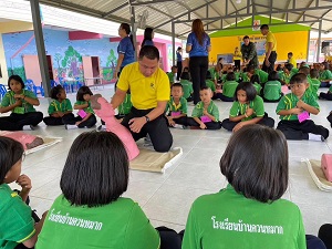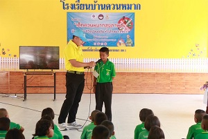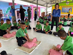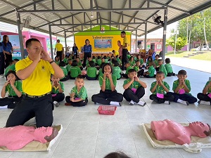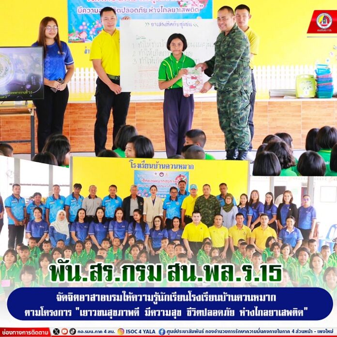 เมื่อวันที่ 14 สิงหาคม 2567 เวลา 08.30 น. พันโทธนรัฐ ลำจวน ผู้บังคับกองพันเสนารักษ์ กรมสนับสนุน กองพลทหารราบที่ 15 (ผบ.พัน.สร.กรม สน.พล.ร.15 ) ค่ายลพบุรีราเมศวร์ จัดชุดวิทยากรของหน่วยอบรมให้ความรู้ เรื่อง ยาเสพติดภัยร้ายใกล้ตัว และการช่วยชีวิตขั้นพื้นฐาน (CPR) ในโครงการ “เด็กควนหมากสุขภาพดี มีความสุข ชีวิตปลอดภัย ห่างไกลยาเสพติด” ให้กับนักเรียนโรงเรียนบ้านควนหมาก สำนักงานเขตพื้นที่การศึกษาประถมศึกษาสงขลา เขต 3 อำเภอเทพา จังหวัดสงขลา