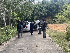 ตามที่ได้มีการปิดกั้นพื้นที่ เพื่อตรวจสอบวัตถุระเบิดภายในรถยนต์ต้องสงสัย ยี่ห้อ นิสสัน รุ่น Almera สีเทา ไม่ติดแผ่นป้ายทะเบียน ในพื้นที่ป่าสวนยาง ตำบลบือมัง อำเภอรามัน จังหวัดยะลา เมื่อวันที่ 15 สิงหาคม 2567 ที่ผ่านมา ล่าสุดวันนี้ (16 สิงหาคม 2567) เจ้าหน้าที่หน่วยเก็บกู้และตรวจสอบวัตถุระเบิด และเจ้าหน้าที่พิสูจน์หลักฐาน ได้เข้าตรวจสอบรถยนต์ต้องสงสัย จากการตรวจสอบไม่พบวัตถุระเบิดและสารประกอบระเบิดภายในรถยนต์คันดังกล่าว ปัจจุบันเจ้าหน้าที่ยังคงปิดกั้นพื้นที่ ตรวจสอบบริเวณโดยรอบเพื่อทำพื้นที่ให้ปลอดภัย รวมทั้งขอให้พี่น้องประชาชนในพื้นที่ระมัดระวังในการเดินทางสัญจร และขออภัยในความไม่สะดวกในเส้นทางดังกล่าวมา ณ โอกาสนี้ สำหรับความคืบหน้าจะรายงานให้ทราบต่อไป