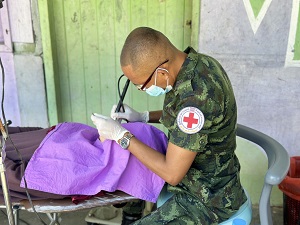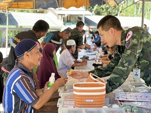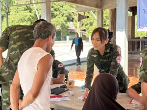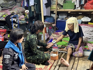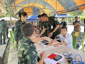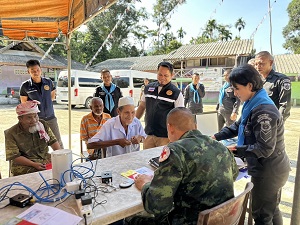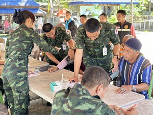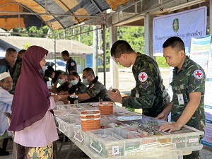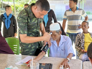 เมื่อวันที่ 16 สิงหาคม 2567 เวลา 09.00 น. พันเอก ภาณุวัฒน์ สุคชเดช ผู้บังคับหน่วยเฉพาะกิจกรมทหารพรานที่ 49 มอบหมายให้ ร้อยตรี มีชัย นุ่นเหลือ ผู้ช่วยหัวหน้าฝ่ายกิจการพลเรือนหน่วยเฉพาะกิจกรมทหารพรานที่ 49 พร้อมด้วย ชุดปฏิบัติการกิจการพลเรือน หมวดทหารพรานหญิงที่ 49 ร่วมกับ ศูนย์ประสานการแพทย์จังหวัดชายแดนภาคใต้ ออกบริการชุดแพทย์เคลื่อนที่ โดยตรวจสุขภาพ รักษาโรคและฝึกสอนการช่วยชีวิตขั้นพื้นฐานพร้อมให้ความรู้เรื่องโรคอุบัติใหม่และโรคอุบัติซ้ำให้บริการประชาชนในพื้นที่จังหวัดชายแดนภาคใต้พร้อมทั้งเยี่ยมผู้พิการและทุพพลภาพในพื้นที่ จำนวน 2 ราย เพื่อติดตามอาการและมอบยาพร้อมให้คำแนะนำการปฏิบัติตัว ณ บ้านกูยิ หมู่ที่ 4 ตำบลร่มไทร อำเภอสุคิริน จังหวัดนราธิวาส โดยมีประชาชนในพื้นที่เข้าร่วมใช้บริการ จำนวน 66 ราย