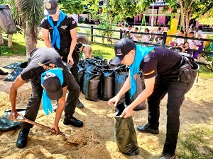 เมื่อวันที่ 16 สิงหาคม 2567 ณ โรงเรียนบ้านป่าม่วง หมู่ที่ 4 บ้านป่าม่วง ตำบลมะนังดาลำ อำเภอสายบุรี จังหวัดปัตตานี หน่วยเฉพาะกิจกรมทหารพรานที่ 44 จัดกำลังพลของหน่วย ร่วมกับ บุคลากรทางการศึกษาโรงเรียนบ้านป่าม่วง ช่วยกันจัดทำบ่อเลี้ยงปลาในรูปแบบบ่อดิน เพื่อเป็นแหล่งเรียนรู้ให้กับนักเรียน ในการศึกษา และพัฒนาต่อยอดให้ดียิ่งขึ้นจนเกิดความยั่งยืนในอนาคต ภายใต้ การดำเนินงานด้านเกษตรชุมชนแบบฟื้นฟู กับ “โครงการอาหารชุมชนโรงเรียนต้นแบบ” (แบบขยายผล)
