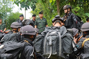 เมื่อวันที่ 16 สิงหาคม 2567 เวลา 08.00 น. พลตรี ไพศาล หนูสังข์ รองแม่ทัพภาคที่ 4 / รองผู้อำนวยการรักษาความมั่นคงภายในภาค 4 ส่วนหน้า พร้อมคณะ ลงพื้นที่เยี่ยมและให้กำลังใจเจ้าหน้าที่ พร้อมตรวจประเมินการปฏิบัติงานของชุดปฏิบัติการจรยุทธ์ ในพื้นที่ 3 จังหวัดชายแดนภาคใต้ โดยเดินทางตรวจเยี่ยม ชุดปฏิบัติการจรยุทธ์ ในพื้นที่จังหวัดนราธิวาส ประกอบด้วย หน่วยเฉพาะกิจกรมทหารพรานที่ 45, หน่วยเฉพาะกิจกรมทหารพรานที่ 48, หน่วยเฉพาะกิจกรมทหารพรานที่ 46 และหน่วยเฉพาะกิจกรมทหารพรานที่ 49 พื้นที่จังหวัดปัตตานี ประกอบด้วย หน่วยเฉพาะกิจกรมทหารพรานที่ 42, หน่วยเฉพาะกิจกรมทหารพรานที่ 44 และพื้นที่จังหวัดยะลา ประกอบด้วย หน่วยเฉพาะกิจกรมทหารพรานที่ 47 และหน่วยเฉพาะกิจกรมทหารพรานที่ 33 พร้อมรับทราบปัญหาข้อขัดข้องและมอบแนวทางการปฏิบัติงาน เพื่อให้หน่วยยึดถือในทิศทางเดียวกัน ในโอกาสนี้ได้มอบสิ่งของอุปโภค-บริโภค เพื่อเป็นการสร้างขวัญกำลังใจแก่เจ้าหน้าที่ผู้ปฏิบัติงาน