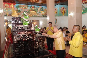 เมื่อวันที่ 17 สิงหาคม 2567 เวลา 08.00 น. ณ อำเภอเบตง จังหวัดยะลา พลเอก มณี จันทร์ทิพย์ ที่ปรึกษากองอำนวยการรักษาความมั่นคงภายในภาค 4 ส่วนหน้า / ประธานบูรณะองค์พระใหญ่ / เลขาธิการศูนย์พัฒนาและส่งเสริมพระพุทธศาสนาจังหวัดชายแดนภาคใต้ / นายกสมาคมเพื่อความมั่นคงพระพุทธศาสนาจังหวัดชายแดนภาคใต้ พร้อมด้วย พระสุนทรวิสุทธานุวัตร เจ้าคณะอำเภอเบตง เจ้าอาวาสวัดพุทธาธิวาส พระอารามหลวง นายประยูร พณิชานนท์ ประธานบริษัทมงคลมหกิจ ประธานในพิธี คุณเกศินี พณิชานนท์ นายอมร ชุมช่วย นายอำเภอเบตง ตลอดจนหัวหน้าส่วนราชการและพี่น้องประชาชน ร่วมขบวนแห่ผ้าห่มพระพุทธธรรมกายมงคลประยุรเกศานนท์สุพพิธาน (องค์พระใหญ่) เพื่อประกอบพิธีห่มผ้าและฉลองสมโภชพระพุทธธรรมกายมงคลประยุรเกศานนท์สุพพิธาน ณ วัดพุทธาธิวาส พระอารามหลวง อำเภอเบตง จังหวัดยะลา โดยมี พุทธศาสนิกชนชาวอำเภอเบตงและชาวมาเลเซีย เข้าร่วมเป็นจำนวนมาก