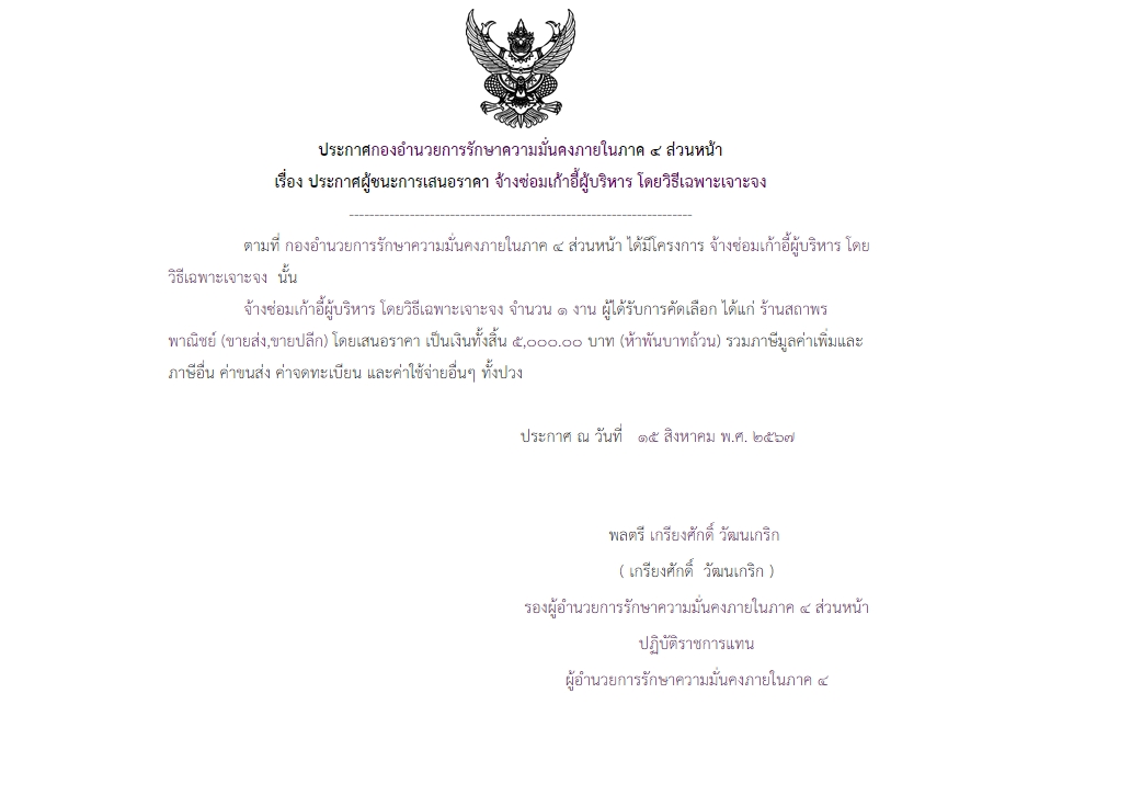 จัดซื้อ จัดจ้างประกาศผู้ชนะการเสนอราคา ประกาศผู้ชนะการเสนอราคา จ้างซ่อมเก้าอี้ผู้บริหาร โดยวิธีเฉพาะเจาะจง August 20, 2024 305 Share Facebook Twitter Google+ Telegram LINE