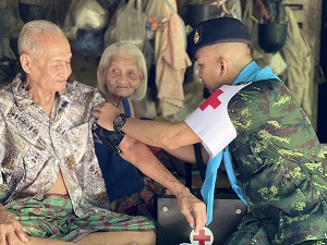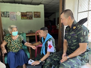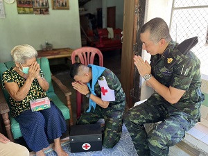 สำหรับการลงพื้นที่ในครั้งนี้ได้เข้าเยี่ยมเยียนผู้สูงอายุจำนวน 3 ครัวเรือน ประกอบด้วย นายชื่น แก้วขวัญ อายุ 95 ปี และ นางม่าน แก้วขวัญ อายุ 87 ปี ผู้สูงอายุอาศัยอยู่ที่บ้านเลขที่ 93 หมู่ที่ 6 บ้านทำเนียบ ตำบลสะบ้าย้อย อำเภอสะบ้าย้อย จังหวัดสงขลา, นางติหะวอ หอมะแอ อายุ 78 ปี ผู้สูงอายุอาศัยอยู่ที่บ้านเลขที่ 3/1 หมู่ที่ 7 บ้านยาเร๊ะ ตำบลสะบ้าย้อย อำเภอสะบ้าย้อย จังหวัดสงขลา และนางเปลี่ยน บุญมา ผู้สูงอายุอาศัยอยู่ที่บ้านเลขที่ 93/10 หมู่ที่ 1 บ้านหน้าแขวง ตำบลสะบ้าย้อย อำเภอสะบ้าย้อย จังหวัดสงขลา นอกจากนี้หน่วยยังได้ให้กำลังพลชุดหมอเดินเท้า ทำการตรวจสุขภาพเบื้องต้น พร้อมให้คำแนะนำปัญหาสุขภาพ และพร้อมมอบยาสามัญประจำบ้านให้กับผู้สูงอายุ เพื่อเป็นการบรรเทาอาการในขั้นต้น และสร้างขวัญกำลังใจให้กับผู้สูงอายุ