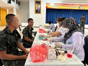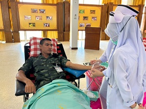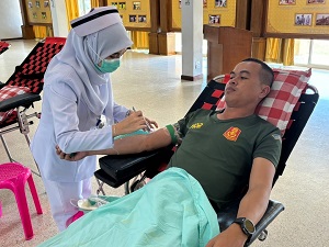 เมื่อวันที่ 22 สิงหาคม 2567 เวลา 09.00 น. ที่ สโมสรนายทหารสัญญาบัตร กองพันทหารราบที่ 1 กรมทหารราบที่ 151 ตำบลกะลุวอ อำเภอเมือง จังหวัดนราธิวาส กองพันทหารราบที่ 1 กรมทหารราบที่ 151 นำกำลังพล ร่วมกิจกรรมบริจาคโลหิต ภายใต้โครงการ “Plus 1 เพิ่มจำนวนครั้ง เพิ่มโลหิต เพิ่มชีวิต ปีที่ 2” (Plus One Blood Donation,More Blood,More Live) เพื่อเป็นการสำรองโลหิตให้กับธนาคารเลือดของโรงพยาบาลในพื้นที่ ในการนำไปใช้ช่วยเหลือประชาชนที่ได้รับบาดเจ็บจากสถานการณ์ความรุนแรงในพื้นที่จังหวัดชายแดนภาคใต้ รวมถึงประชาชนที่มีความต้องการใช้โลหิตในการรักษาอาการเจ็บป่วย โดยมีเจ้าหน้าที่จากโรงพยาบาลนราธิวาสราชนครินทร์ และ เจ้าหน้าที่จากโรงพยาบาลสุไหงโก-ลก ออกหน่วยรับบริจาคโลหิต พร้อมเยี่ยมให้กำลังใจผู้ร่วมบริจาคโลหิตในครั้งนี้