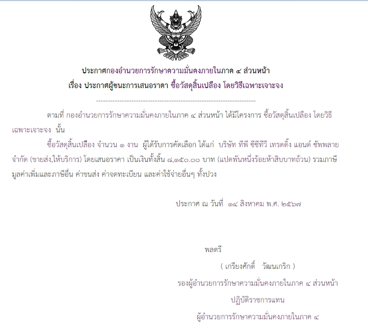 จัดซื้อ จัดจ้างประกาศผู้ชนะการเสนอราคา ประกาศผู้ชนะการเสนอราคา ซื้อวัสดุสิ้นเปลือง โดยวิธีเฉพาะเจาะจง August 23, 2024 264 Share Facebook Twitter Google+ Telegram LINE