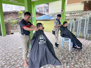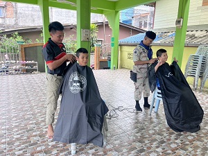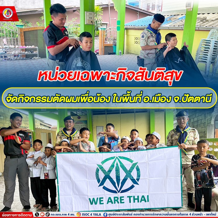 หน่วยเฉพาะกิจสันติสุข โดย ชุดสันติสุขที่ 103 ดำเนินกิจกรรมตัดผมเพื่อน้อง โดยการให้บริการตัดผมกับเด็กนักเรียน ณ ศูนย์การศึกษาอิสลามประจำมัสยิดซีอารุลอิสลาม ตำบลอาเนาะรู อำเภอเมือง จังหวัดปัตตานี เพื่อให้เด็กนักเรียนมีทรงผมสั้น สะอาดเรียบร้อย และยังเป็นการช่วยแบ่งเบาภาระลดค่าใช้จ่ายในครัวเรือนของนักเรียน และผู้ปกครอง และเป็นการสร้างความเชื่อมั่นให้กับพี่น้องประชาชนในพื้นที่ ภายใต้ “สังคมการอยู่ร่วมกันของพี่น้องประชาชน และเจ้าหน้าที่ทางภาครัฐ อย่างสันติสุข” นอกจากนี้หน่วยเฉพาะกิจสันติสุขยังได้เชิญชวนน้อง ๆ ร่วมแสดงสัญลักษณ์ WE ARE THAI (เราคือไทย) ซึ่งสร้างความสุข สร้างรอยยิ้ม ความประทับใจให้กับเยาวชนและประชาชนในพื้นที่อีกด้วย