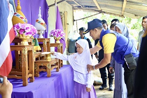 ในการนี้อำเภอรือเสาะได้มอบเงินพระราชทานช่วยเหลือรายเดือน พร้อมมอบถุงยังชีพสภากาชาดไทย อีกทั้งหน่วยเฉพาะกิจกรมทหารพรานที่ 46 ได้ร่วมมอบถุงยังชีพของหน่วย และร่วมรับประทานอาหาร ร่วมกับผู้นำท้องถิ่นในพื้นที่ เพื่อพูดคุยแลกเปลี่ยนความคิดเห็น และสอบถามปัญหาการปฏิบัติงานในพื้นที่