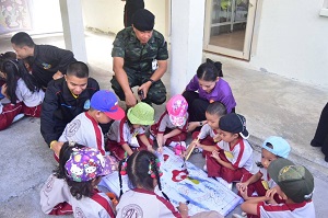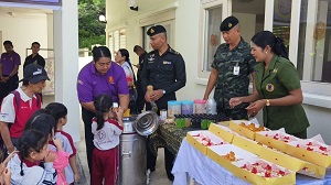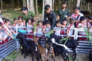 โดยหน่วยได้จัดเจ้าหน้าที่คอยให้คำแนะนำเกี่ยวกับรายละเอียดความเป็นมาของโครงการฯ วิธีการปลูกผักปลอดสารพิษ และการผลิตผ้าบาติก ซึ่งคณะครูและเด็กนักเรียน ได้เดินทางศึกษาดูงานโครงการทหารพันธุ์ดี ค่ายสิรินธร เพื่อเก็บเกี่ยวประสบการณ์ที่ดีเรียนรู้เศรษฐกิจพอเพียง ต่างก็มีความสุขและประทับใจที่ได้มาเยี่ยมชมโครงการทหารพันธุ์ดี