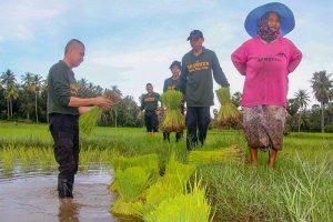หน่วยเฉพาะกิจกรมทหารพรานที่ 42 ร่วมกันลงแขกปักดำนา เพื่อช่วยเหลือ นางแอเสาะ สาเมาะ ซึ่งเป็นชาวนาที่มีฐานะยากจน และขาดแรงงานในการปักดำนา เพื่อช่วยลดต้นทุนการผลิตให้กับชาวนา และสร้างความสัมพันธ์อันดีระหว่างเจ้าหน้าที่ทหาร กับชาวนาในพื้นที่ เป็นการคืนความสุข สร้างรอยยิ้มให้กับพี่น้องเกษตรกรชาวนาในพื้นที่อีกด้วย