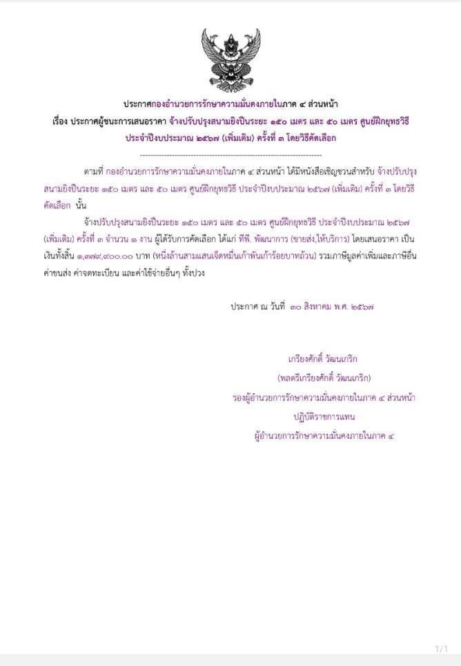 จัดซื้อ จัดจ้างประกาศผู้ชนะการเสนอราคา ประกาศผู้ชนะการเสนอราคา จ้างปรับปรุงสนามยิงปืนระยะ ๑๕๐ เมตร และ ๕๐ เมตร ศูนย์ฝึกยุทธวิธี ประจำปีงบประมาณ ๒๕๖๗ (เพิ่มเติม) ครั้งที่ ๓ โดยวิธีคัดเลือก August 31, 2024 339 Share Facebook Twitter Google+ Telegram LINE