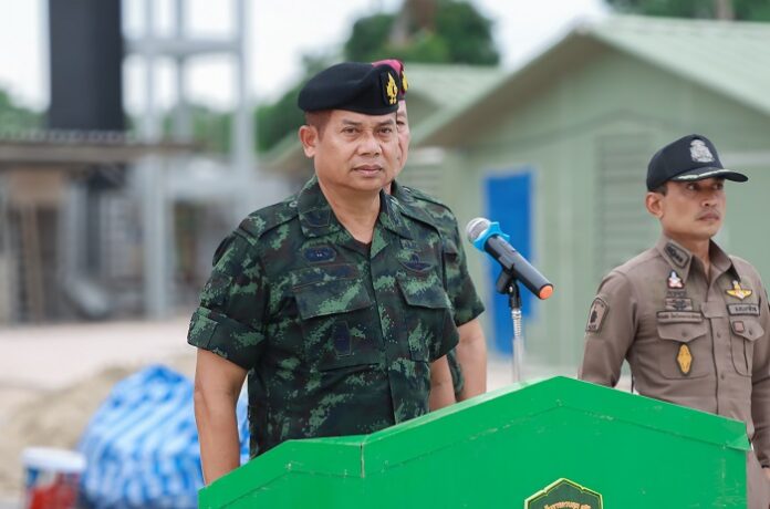 เมื่อวันที่ 2 กันยายน 2567 เวลา 10.00 น. ที่ฐานปฏิบัติการชุดป้องกันชายแดน กองร้อยป้องกันชายแดนที่ 4 กองบังคับการควบคุมสุริโยทัย ตำบลเกาะสะท้อน อำเภอตากใบ จังหวัดนราธิวาส พลตรี ไพศาล หนูสังข์ รองแม่ทัพภาคที่ 4 / รองผู้อำนวยการรักษาความมั่นคงภายในภาค 4 ส่วนหน้า และคณะผู้บังคับบัญชา ลงพื้นที่ติดตามความคืบหน้าการปรับปรุงฐานปฏิบัติการให้มีความเรียบร้อย รัดกุม และมีประสิทธิภาพมากยิ่งขึ้น หลังได้รับผลกระทบจากน้ำท่วมเป็นประจำทุกปี ตามนโยบายของผู้บัญชาการทหารบก พร้อมติดตามผลการปฏิบัติงาน และรับทราบปัญหาข้อขัดข้องในการปฏิบัติภารกิจ ซึ่งกองร้อยป้องกันชายแดนที่ 4 มีหน้าที่หลักในการดูแลรักษาความมั่นคงตามแนวชายแดนไทย-มาเลเซีย โดยเน้นย้ำการวางกำลังป้องกันชายแดนให้พิจารณาจากลักษณะภูมิประเทศ อาทิ เขื่อนป้องกันตลิ่งแบบหินทิ้ง, รั้วตาข่ายเหล็ก, รั้วอิเล็กทรอนิกส์ และฐานปฏิบัติการ เพื่อเพิ่มประสิทธิภาพการป้องกันชายแดน แก้ไขปัญหาภัยแทรกซ้อนที่มีผลกระทบต่อความมั่นคงให้มีประสิทธิภาพสูงสุด ครอบคลุมทุกมิติ โดยมี หัวหน้าส่วนราชการ ทหาร ตำรวจ ผู้นำท้องที่ ผู้นำท้องถิ่น ผู้นำศาสนา และหน่วยงานที่เกี่ยวข้อง ร่วมให้การต้อนรับ