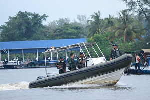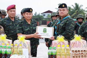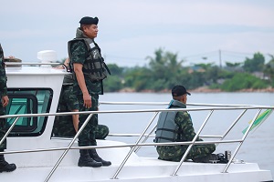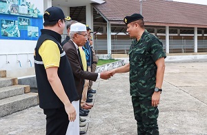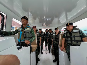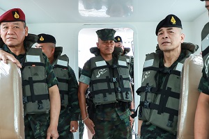 โอกาสนี้ พลตรี ไพศาล หนูสังข์ รองแม่ทัพภาคที่ 4 / รองผู้อำนวยการรักษาความมั่นคงภายในภาค 4 ส่วนหน้า ได้ลงพื้นที่ลาดตระเวนทางน้ำ ด้วยเรือตรวจการณ์ของเจ้าหน้าที่ตำรวจน้ำตากใบ เพื่อสำรวจความเรียบร้อยภาพรวมตลอดเส้นทาง ตามแนวลำน้ำของแม่น้ำโก-ลก ที่กั้นเขตแดนระหว่างประเทศไทย – ประเทศมาเลเซีย พร้อมเน้นย้ำต้องบูรณาการปฏิบัติงานร่วมกันกับทุกภาคส่วน เสริมกำลังตามแนวชายแดน โดยเฉพาะช่องทางที่มีชุมชนหรือหมู่บ้านอาศัยอยู่ใกล้แนวชายแดน การจัดตั้งจุดตรวจ / จุดสกัด หลังพบผู้ก่อเหตุได้ใช้บางพื้นที่เป็นช่องทางหลบหนีหรือเคลื่อนไหวหลบซ่อนเข้าไปในเขตประเทศมาเลเซีย ควบคู่กับการยับยั้งการลักลอบเข้าทำงานและหลบหนีเข้าเมืองโดยผิดกฎหมาย โดยเฉพาะปัญหาสินค้าหนีภาษี เช่น น้ำมันเถื่อน, ปัญหายาเสพติด การผ่านเข้าออกประเทศตามช่องทางต่าง ๆ ที่ไม่ถูกต้องตามกฎหมาย ซึ่งมีทั้งที่เจตนาลักลอบเข้ามาและรู้เท่าไม่ถึงการณ์ ย้ำทุกหน่วยปฏิบัติงานต้องยกระดับการรักษาความปลอดภัยฐานปฏิบัติการ ให้มีความพร้อมอยู่เสมอ และหมั่นซักซ้อมแผนเผชิญเหตุอย่างต่อเนื่อง ให้พร้อมปฏิบัติงานตลอดเวลาและเต็มขีดความสามารถ เพื่อความปลอดภัยในชีวิตและทรัพย์สินของพี่น้องประชาชน พร้อมกันนี้ยังได้มอบเครื่องอุปโภค – บริโภค เพื่อเป็นขวัญกำลังใจแก่กำลังพลในการปฏิบัติหน้าที่ต่อไป