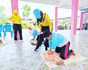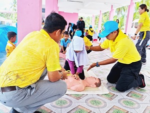 กิจกรรมครั้งนี้ ได้สอดแทรกพระราชกรณียกิจด้านการสาธารณสุขส่งเสริมความรักต่อสถาบันหลักของชาติ ซึ่งได้รับเชิญให้เป็นวิทยากรให้ความรู้ให้กับนักเรียนชั้นประถมศึกษาปีที่ 1 – 6 โดยมีผู้เข้าร่วม จำนวน 171 คน แบ่งเป็น นักเรียนจำนวน 165 คน และคุณครู 6 คน เข้ารับการฝึกอบรม เรียนรู้ภาคทฤษฎี และภาคปฏิบัติ ทั้งสถานการณ์การจมน้ำ และการฝึกปฏิบัติช่วยเหลือผู้ป่วยจมน้ำด้วยวิธีตะโกน โยน ยื่น รวมถึงการช่วยเหลือฟื้นคืนชีพเบื้องต้น โดยนักเรียนมีความตั้งใจในการเรียนรู้ สนุกสนาน มีส่วนร่วมในการทำกิจกรรม พร้อมที่จะเป็น HERO CPR เพื่อช่วยเหลือผู้อื่นได้ นอกจากนี้ เจ้าหน้าที่ยังได้มอบโลชั่นกันยุงให้กับทางโรงเรียนอีกด้วย