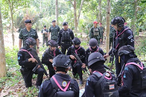จากนั้น พลตรี ไพศาล หนูสังข์ รองแม่ทัพภาคที่ 4 / รองผู้อำนวยการรักษาความมั่นคงภายในภาค 4 ส่วนหน้า และคณะผู้บังคับบัญชา ร่วมเดินเท้าลาดตระเวรทบทวนหลังการปฏิบัติพร้อมกำลังพลชุดปฏิบัติการจรยุทธ์ กองร้อยทหารพรานที่ 2204 หน่วยเฉพาะกิจกรมทหารพรานที่ 22 ณ บ้านต้นมะขาม (กูแบสะนิง) หมู่ที่ 4 ตำบลเมาะมาวี อำเภอยะรัง จังหวัดปัตตานี เพื่อติดตามการปฏิบัติหน้าที่ รับทราบปัญหา ข้อขัดข้อง และมอบนโยบายแก่กำลังพล