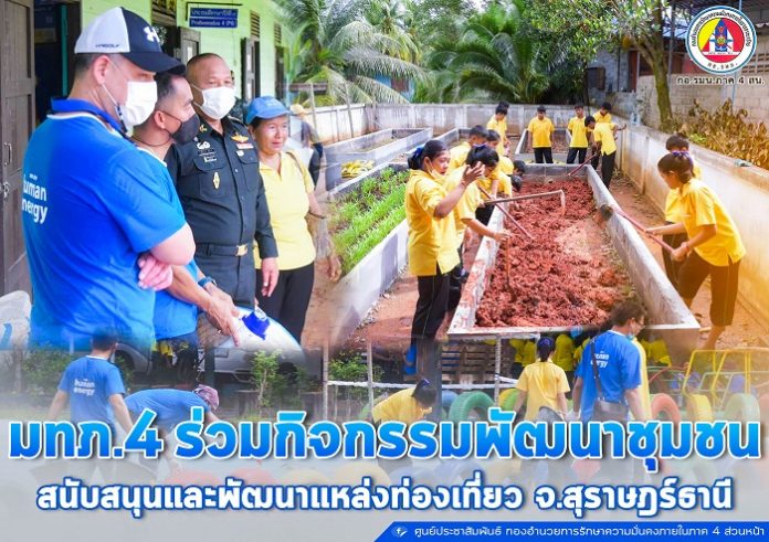 วันนี้ 16 ธันวาคม 2563 เวลา 10.30 น. ณ โรงเรียนวัดบางใบไม้ อำเภอเมือง จังหวัดสุราษฎร์ธานี พลโท เกรียงไกร ศรีรักษ์ แม่ทัพภาคที่ 4 ลงพื้นที่ให้กำลังใจ และร่วมกิจกรรมการพัฒนาชุมชน จากการร่วมแรงร่วมใจของพี่น้องประชาชนชุมชนวัดบางใบไม้ และ บริษัท เชฟรอนประเทศไทยสำรวจและผลิต จำกัด ร่วมกันพัฒนาปรับปรุงภูมิทัศน์บริเวณโดยรอบให้เกิดความสวยงาม สะอาดตา เพื่อสนับสนุนการท่องเที่ยวของชุมชนวัดบางใบไม้ ถือเป็นการพัฒนาชุมชนที่เกิดการสร้างรายได้ สร้างอาชีพ พัฒนาเศรษฐกิจในชุมชน ให้เป็นแหล่งท่องเที่ยวที่ได้รับความนิยมของคนในพื้นที่จังหวัดสุราษฎร์ธานี และใกล้เคียงได้อีกทางหนึ่งด้วย