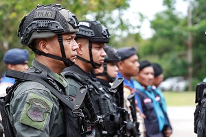 วันนี้ (9 กันยายน 2567) เวลา 11.00 น. พลเอก เจริญชัย หินเธาว์ ผู้บัญชาการทหารบก / ผู้บัญชาการศูนย์ปฏิบัติการกองทัพบก / รองผู้อำนวยการรักษาความมั่นคงภายในราชอาณาจักร และคณะผู้บังคับบัญชา ลงพื้นที่ตรวจเยี่ยมหน่วยเฉพาะกิจตำรวจนราธิวาสที่ 93 ตำบลโคกเคียน อำเภอเมืองนราธิวาส จังหวัดนราธิวาส พร้อมรับฟังการบรรยายสรุป ติดตามผลและการปฏิบัติงานของหน่วยในพื้นที่และร่วมพบปะกำลังพล ตลอดจนรับทราบปัญหา ข้อขัดข้อง และข้อเสนอแนะ รวมทั้งมอบนโยบายการปฏิบัติงานแก่กำลังพลให้มีประสิทธิภาพยิ่งขึ้น นอกจากนี้ยังได้มอบสิ่งของอุปโภค บริโภคแก่หน่วยในพื้นที่ เพื่อแทนคำขอบคุณและเป็นขวัญกำลังใจในการปฏิบัติหน้าที่ต่อไป โดยมี พลโท ศานติ ศกุนตนาค แม่ทัพภาคที่ 4 / ผู้อำนวยการรักษาความมั่นคงภายในภาค 4 พร้อมด้วย พลโท ปราโมทย์ พรหมอินทร์ แม่ทัพน้อยที่ 4/ รองผู้อำนวยรักษาความมั่นคงภายในภาค 4 ส่วนหน้า, พลตรี ไพศาล หนูสังข์ รองแม่ทัพภาคที่ 4 / รองผู้อำนวยการรักษาความมั่นคงภายในภาค 4 ส่วนหน้า ผู้บังคับหน่วยเฉพาะกิจนราธิวาส, ตำรวจ, ทหาร, หัวหน้าส่วนราชการ, ผู้บังคับหน่วยเฉพาะกิจตำรวจนราธิวาสที่ 93 และกำลังพลร่วมให้การต้อนรับ