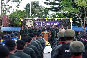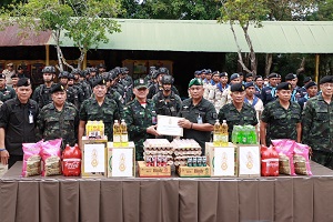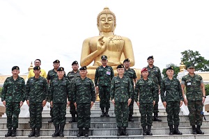 จากนั้น ผู้บัญชาการทหารบก และคณะฯ เดินทางไปปฏิบัติศาสนกิจ ณ วัดเขากง ตำบลลำภู อำเภอเมืองนราธิวาส จังหวัดนราธิวาส โดยได้สักการะพระพุทธทักษิณมิ่งมงคล ถวายสังฆทาน และกราบนมัสการพระครูบรรพต พรหมญาณ เจ้าอาวาสวัดเขากง ก่อนรับมอบวัตถุมงคลเพื่อเป็นขวัญกำลังใจและที่ยึดเหนี่ยวทางใจให้แก่กำลังพลผู้ปฏิบัติหน้าที่ในพื้นที่จังหวัดชายแดนภาคใต้ที่มารอให้การต้อนรับ