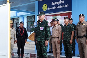 ต่อมาเวลา 14.15 น. ผู้บัญชาการทหารบก และคณะฯ พร้อมด้วยแม่ทัพภาคที่ 4 ลงพื้นที่ตรวจเยี่ยมการปฏิบัติงานของเจ้าหน้าที่ศูนย์ปฏิบัติการ อำเภอยะรัง จังหวัดปัตตานี และฐานปฏิบัติการชุดคุ้มครอง ตำบลท่าสาป อำเภอเมือง จังหวัดยะลา พร้อมมอบสิ่งของเครื่องอุปโภคบริโภค เพื่อเป็นขวัญกำลังใจตอบแทนการปฏิบัติงานในพื้นที่จังหวัดชายแดนภาคใต้