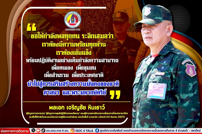 (ลงพื้นที่ให้กำลังใจและมอบนโยบายการปฏิบัติงานแก่กำลังพล หน่วยในพื้นที่ อ.หนองจิก จ.ปัตตานีเมื่อ 10 กันยายน 2567)