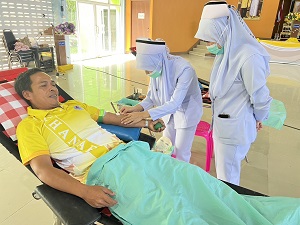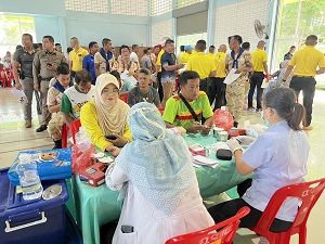 วันที่ 10 กันยายน 2567 เวลา 09.00 น. ณ หอประชุมที่ว่าการอำเภอจะแนะ จังหวัดนราธิวาส ร้อยโท กิตติ เกื้อเพชร ผู้บังคับกองร้อยทหารพรานที่ 4914 หน่วยเฉพาะกิจกรมทหารพรานที่ 49 พร้อมด้วย กำลังพลจิตอาสาของหน่วย ร่วมกับ หน่วยงานราชการ, ผู้นำท้องที่, ผู้นำท้องถิ่น และประชาชนจิตอาสาในพื้นที่อำเภอจะแนะ จังหวัดนราธิวาส เข้าร่วมบริจาคโลหิต ประจำเดือนกันยายน 2567 ภายใต้ชื่อ โครงการ “ให้โลหิต ให้ชีวิต ให้ประจำ” ( Give Blood, Give Lives, Give Forever ) เพื่อจัดหาโลหิตให้แก่โรงพยาบาลนราธิวาสราชนครินทร์ และโรงพยาบาลสุไหงโก-ลก จังหวัดนราธิวาส อีกทั้งเพื่อเพิ่มปริมาณโลหิตให้เพียงพอในการช่วยเหลือผู้ป่วย ผู้ได้รับผลกระทบ และบาดเจ็บจากเหตุการณ์ความรุนแรงในพื้นที่จังหวัดชายแดนภาคใต้